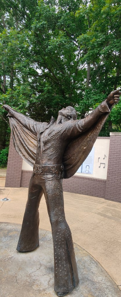 Our journey continued early the next day, and we decided to have breakfast in Tupelo – a southern staple… Waffle House. A breakfast for champions! Then we visited Elvis’ birthplace for a photo with the King of Rock ‘n’ Roll. 🎸