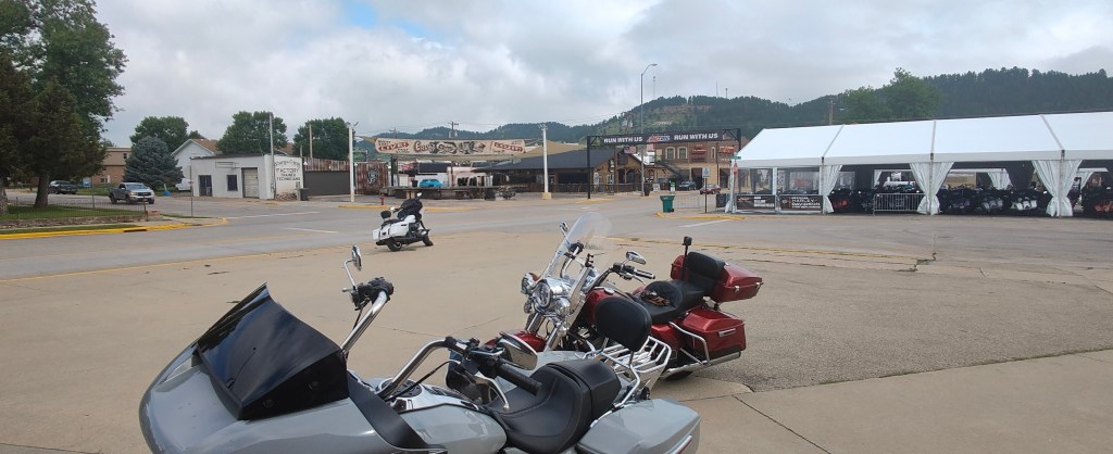 Our relaxed day wrapped up with “Finding Nemo” (and riding through it) and a timely arrival in Deadwood, just ahead of a rain shower. There, we unexpectedly met up with friends in town, sharing dinner at the Saloon #10 over beer and bison burgers—a fitting end to a day focused on great roads, sightseeing, and good company.