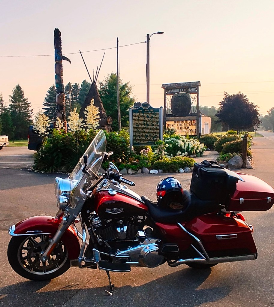 Bright-eyed and ready after a solid night’s rest—no hurdles between me and the open road. The early start feels earned, not forced. Two coin stops on the radar today, each one inching me closer to the familiar comfort of home turf. The morning air greets me at a brisk 55F; after sweating through a string of scorched days, this is a welcome chill. Holiday Motel Manistique deserves a shoutout, truly—would recommend to anyone who finds themselves exploring these northern wilds. I make a point of keeping it neighborly: pushing the bike the hundred yards to the main road before firing up the engine. 6am and Harley thunder isn’t everyone’s preferred alarm clock.